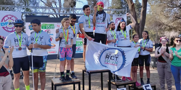 Sus principales consignas son promover el deporte, la competencia (como forma de mejora, superación y evolución) y la cohesión social. En la actualidad está compuesta por 60 personas (35 con discapacidad, 17 guías bikers y 8 voluntarios), que ponen lo mejor de sí para obtener múltiples beneficios para su salud, tales como mayor resistencia, velocidad, fuerza, movilidad, equilibrio, reacción, percepción, adaptación y ritmo. ¿Cómo se desarrolla esta modalidad de ciclismo adaptado? En bicicletas tipo tándem, que son impulsadas de a dos: las personas con baja visión/ceguera total/autismo/sordos/sordociegos hacen las veces de copiloto (ocupando el asiento trasero), mientras que ciclistas convencionales (guías) van al frente, accionando los frenos y/o cambios, según el contexto y situación de manejo particular. Desde la agrupación, se busca un permanente equilibrio bicicleta-guía-copiloto, a raíz de las diversas características y prestaciones de los modelos tándem que utilizan, la condición física, objetivos, expectativas y nivel de experiencia de cada uno de los atletas. En este contexto, existen tres categorías o niveles bien diferenciados: Inicial/Entrenamiento, Cicloturismo y Competencia. Sobre el entrenamiento (lugar, día y duración) Martes y Jueves, 4 hs (en dos turnos) en la Pista de Ciclismo del Estadio Kempes, un espacio de Ciclismo Adaptado de la Agencia Córdoba Deportes. Vínculos Con la comunidad educativa (Fac Cs Exactas, Físicas y Naturales) para el desarrollo de dispositivos, proyectos y talleres de formación en ciclismo adaptado; con IPEF (taller de recreación y accesibilidad), Agencia Córdoba Deportes, firmas como Bicicletas Tomaselli y Bicicletas Oxea, entre otras instituciones. Viajes Entre algunas de las aventuras que realizaron los chicos, destacan la Peregrinación a Virgen de Lourdes (Alta Gracia), el Viaje al Obelisco, hasta Plaza Federal (Córdoba), etc. Competencia Inscriptos en la categoría tándem que existe en varias carreras de ciclismo de Ruta, Mountain bike y Rural Bike, algunos de sus miembros participaron exitosamente de: Rally MTB – Cerro Pan de Azúcar, Ruralazo Bower Cba, Vuelta Ciclística a la Ciudad de Córdoba 2022, 3° Vuelta Villa Albertina (Córdoba), Carreras Federación Ciclista Cordobesa (Estadio Kempes), Choyana Bike Race (Localidad Dean Funes, Córdoba), Desafío Camino Real (Córdoba) y “Huella Entrerriana”, en la provincia mesopotámica. Otros eventos Los chicos fueron protagonistas en “Festival Córdoba Repara”, “Expo Adaptarnos”, “Maratón New Balance”, “+Tándems+Inclusión”(organizado por Asoc Civil Empujando Límites, etc. Proyección a futuro “…Queremos ser los referentes y embajadores del Ciclismo Adaptado en la región, promoviendo el deporte y la sana convivencia. La convivencia es parte de las necesidades del ser humano y requiere de la interacción con otros individuos para alcanzar un bienestar integral…” (Diego Moyano, Líder de RCT).